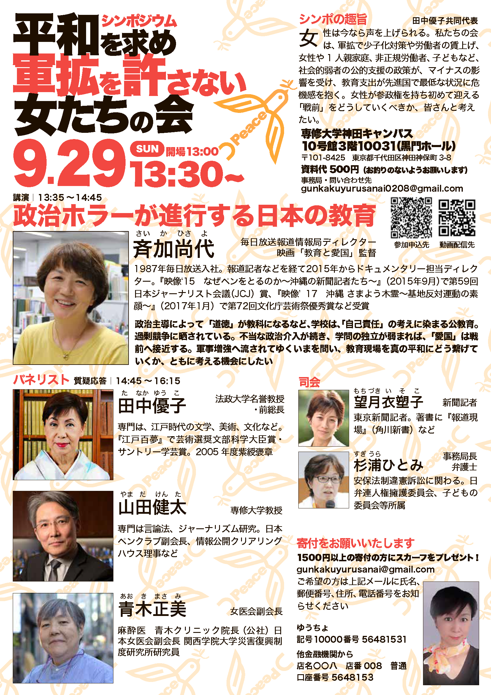 2024年10月4日 斉加監督を招き、教育考えるシンポ 「女たちの会」神保町で
