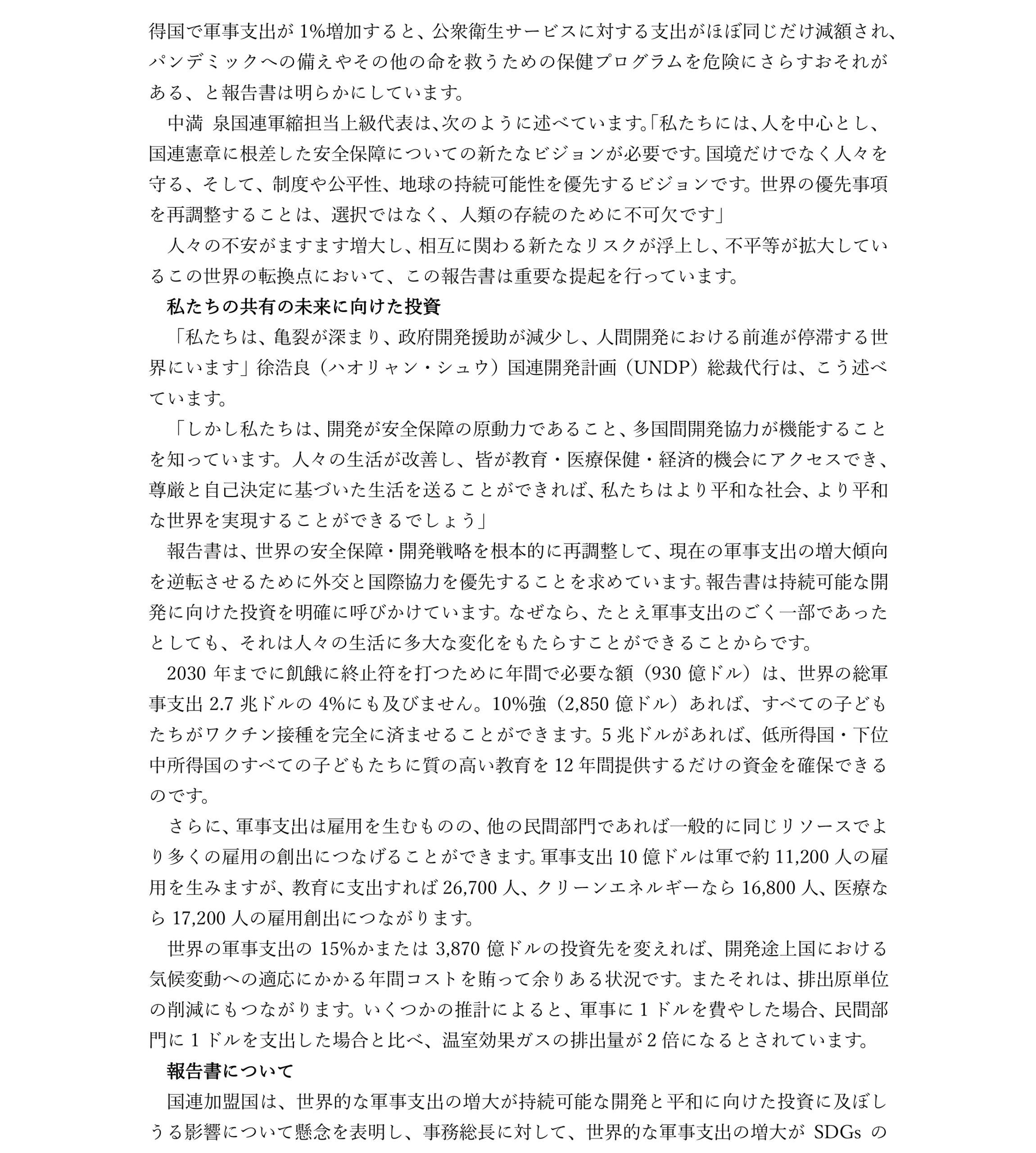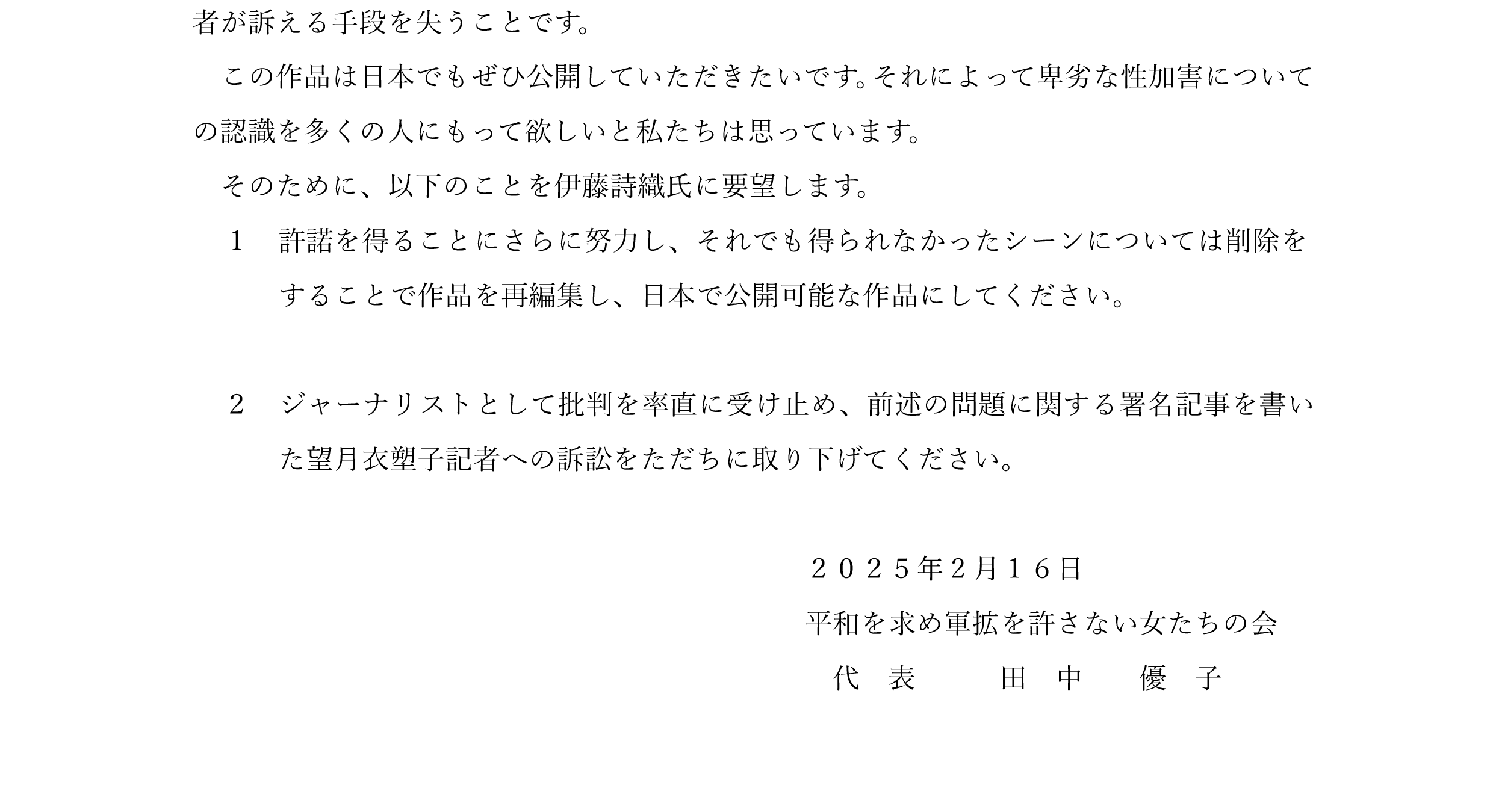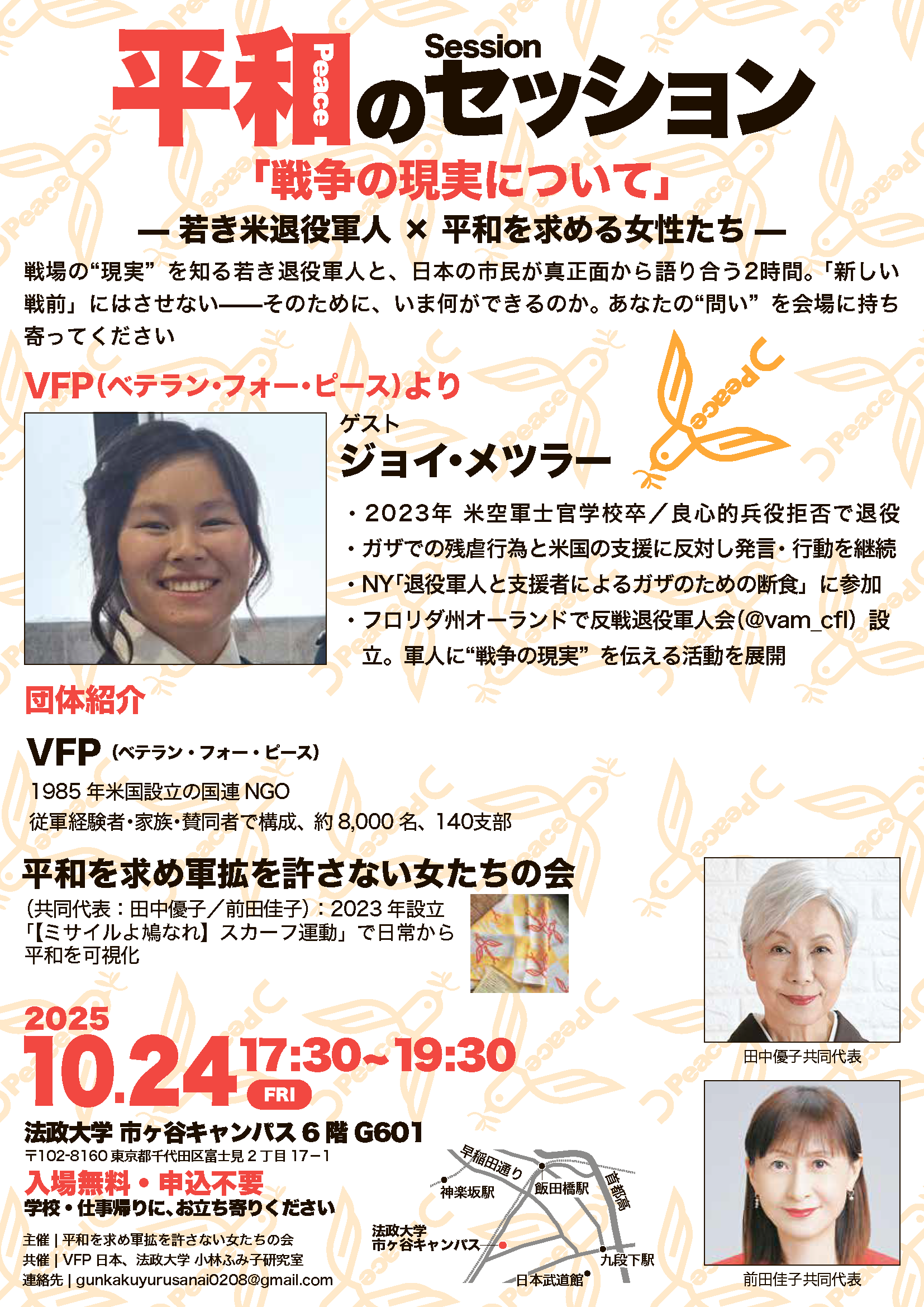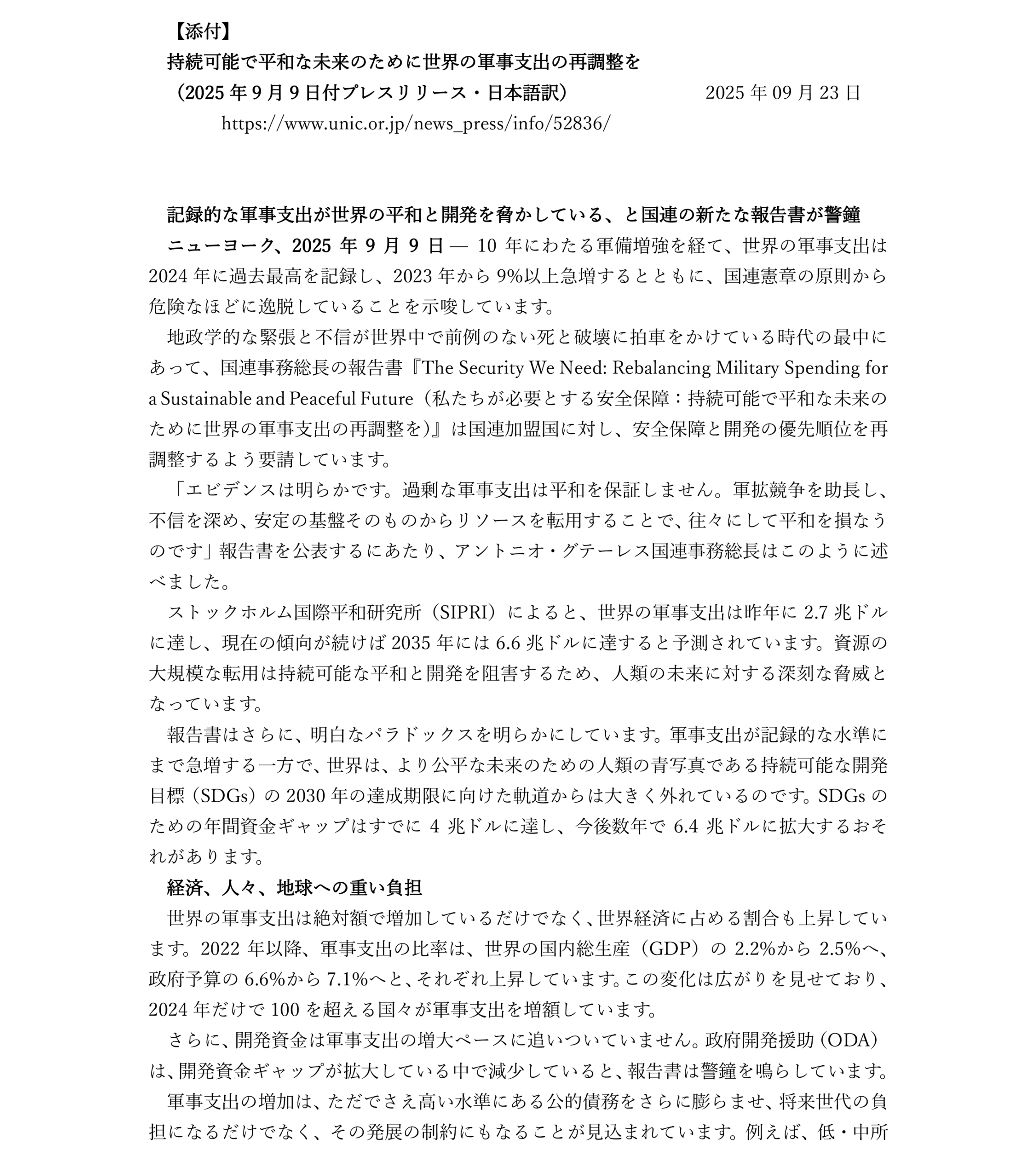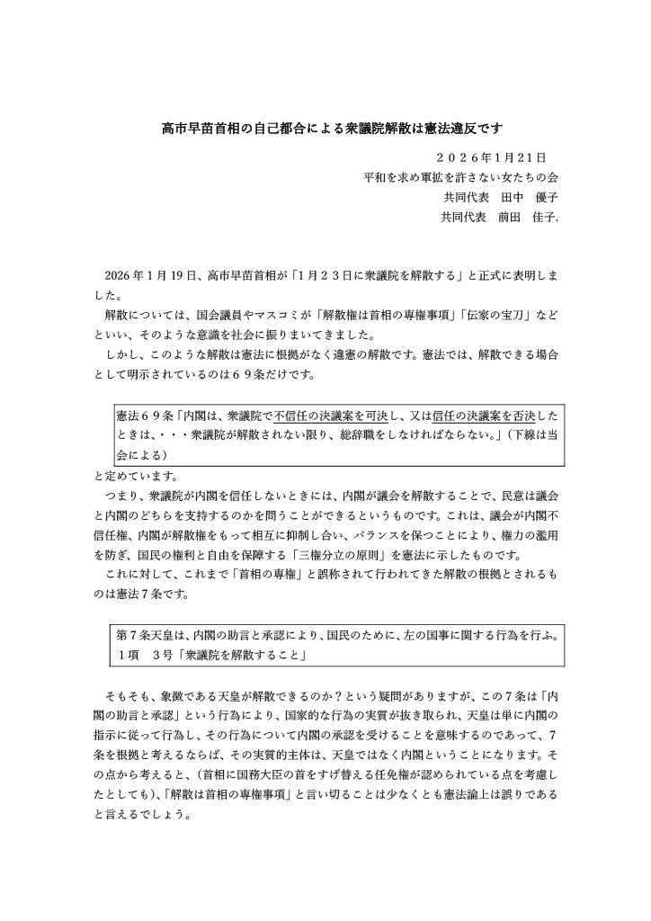 女性は今なら、声を上げられます。私たちの会は、軍拡によって少子化対策や労働者の賃上げ、女性や1人親家庭、非正規労働者、子どもなど、社会的弱者のための公的支援の政策が、マイナスの影響を受けること、日本の教育への公的支出が先進国で最低レベルである状況に、重大な危機感を持っています。