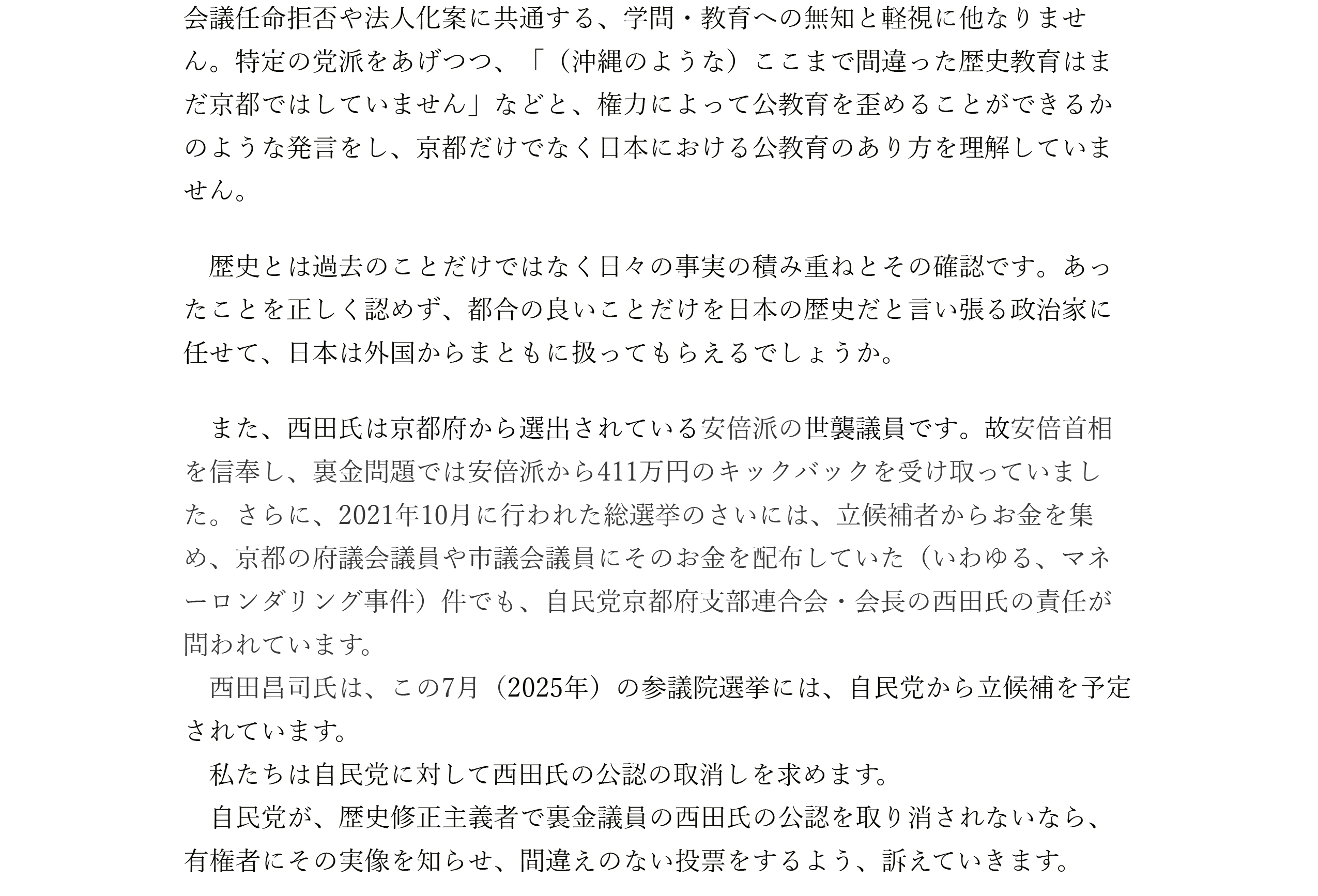 東京都の歴史を直視し、そこに差別、弾圧、不平等があったのなら、それを明らかにし、都民と認識を共有することによって、真に多様性を尊重する都市を目指すことこそが、国内外に大きな役割を果たす首都東京の役割です。