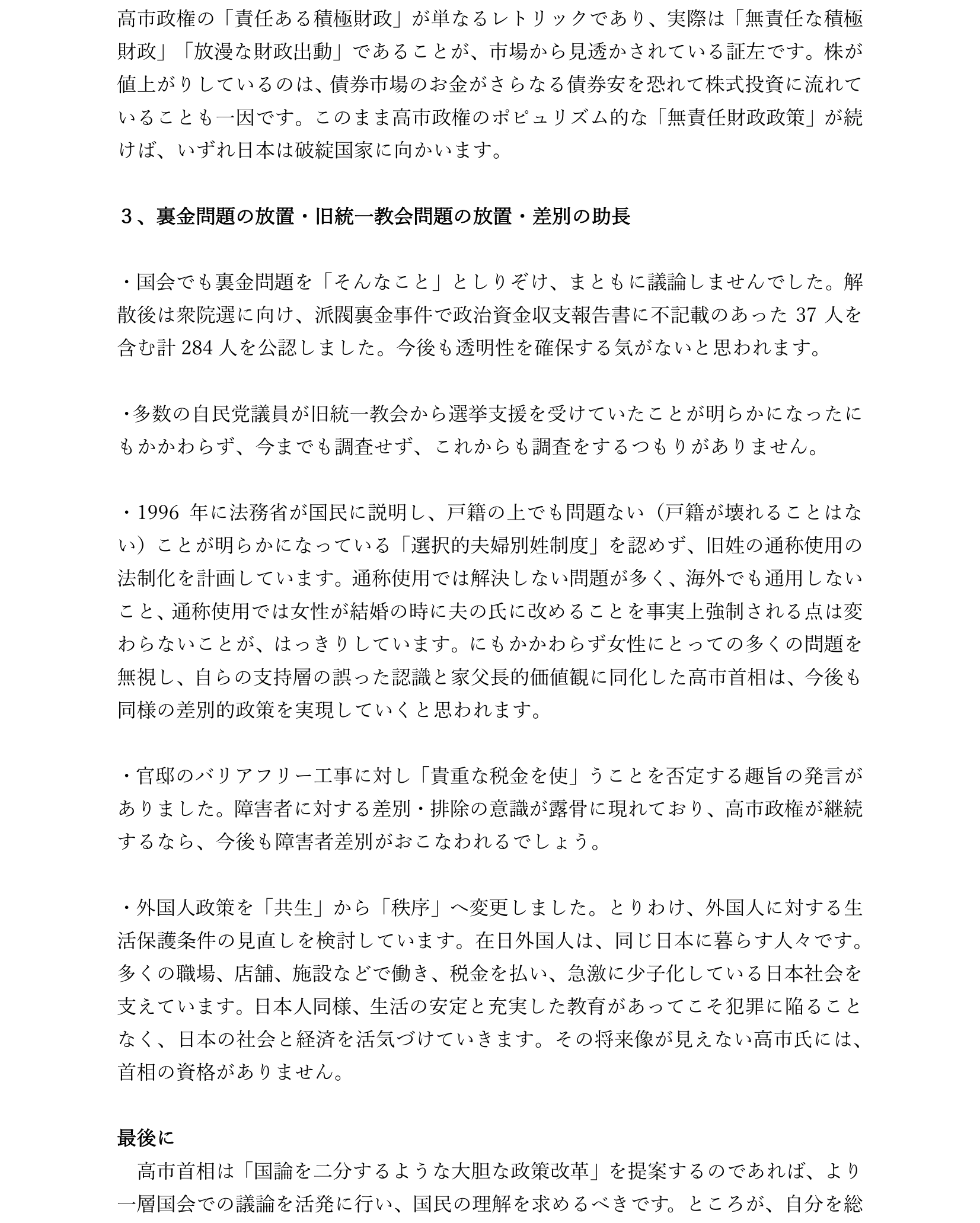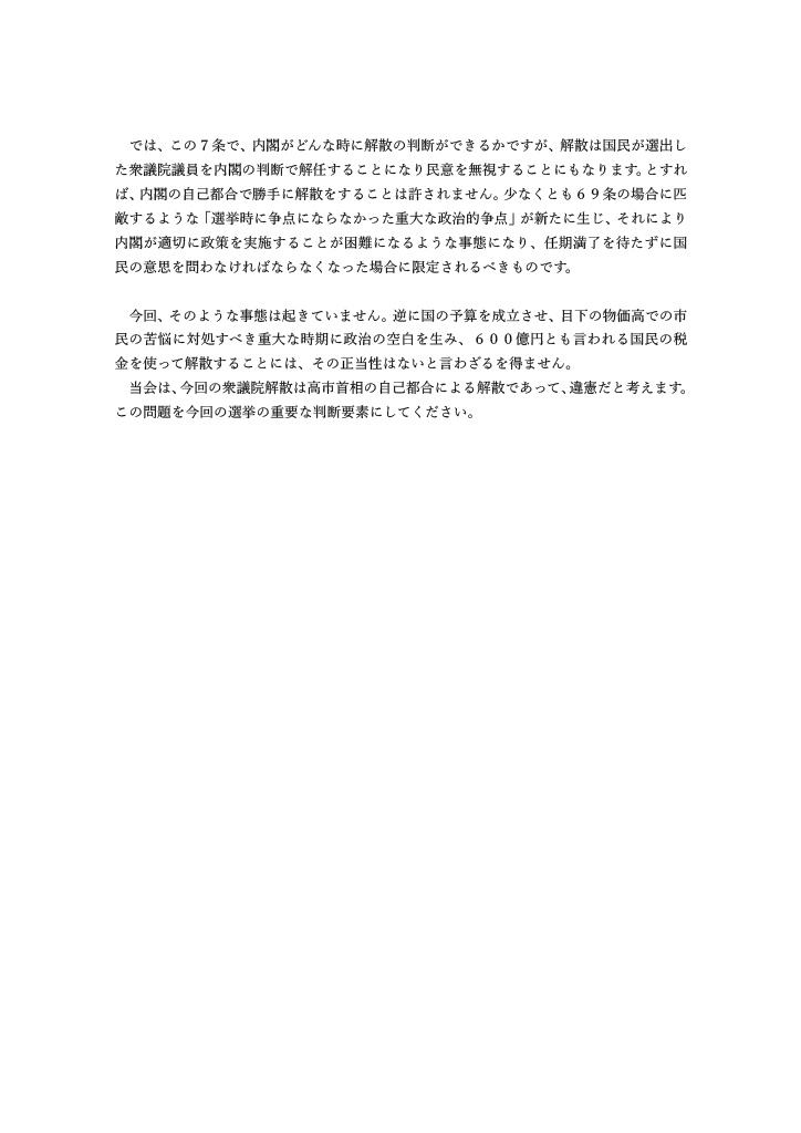 経済を活性化し、雇用を充実させ、物価高騰に負けない都政、人を大切にする東京都を築くためには、都知事の交代が、ぜひとも必要です。