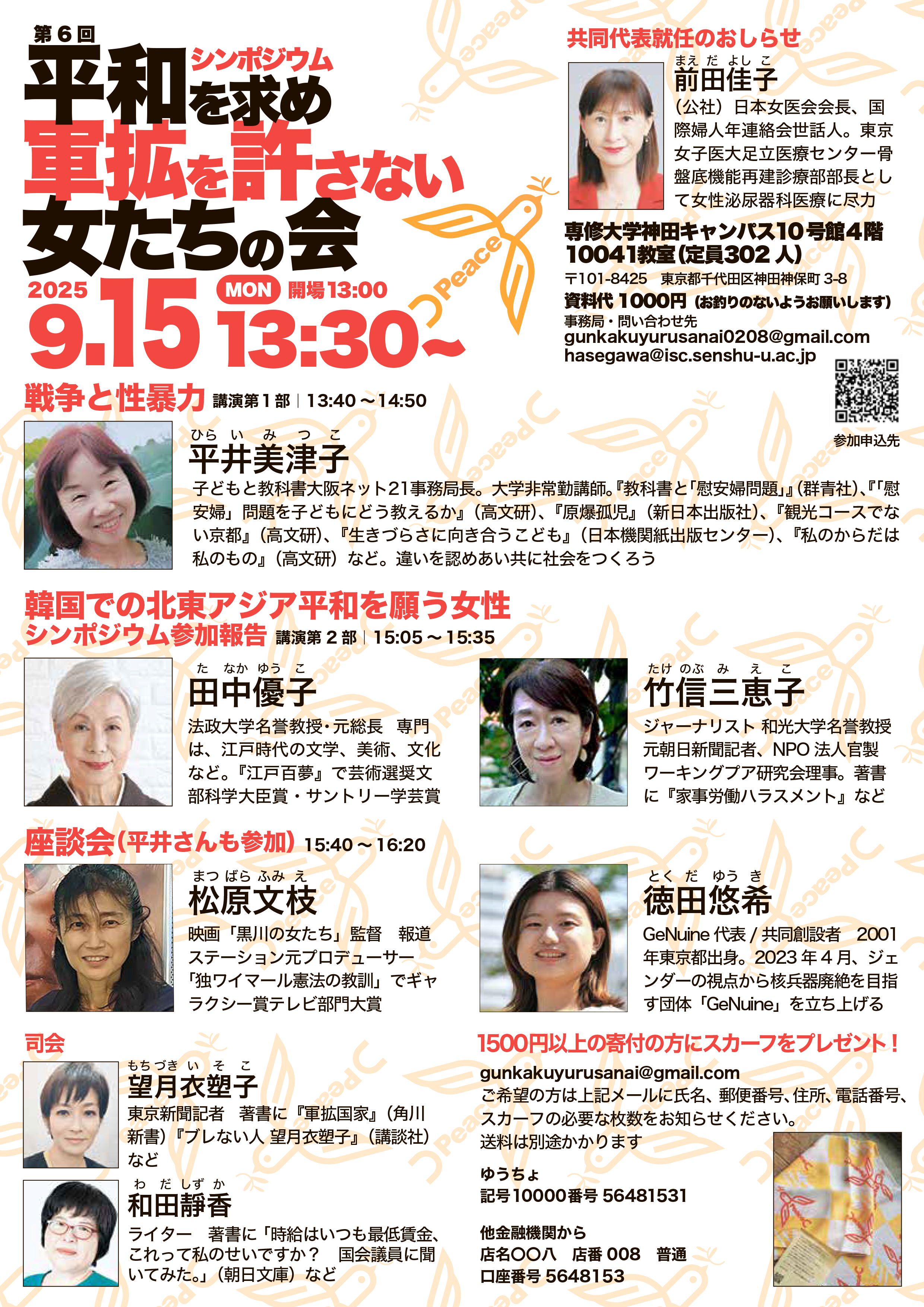 第1部 13時35分~ 講演平井美津子さん「戦争と性暴力(仮題)」